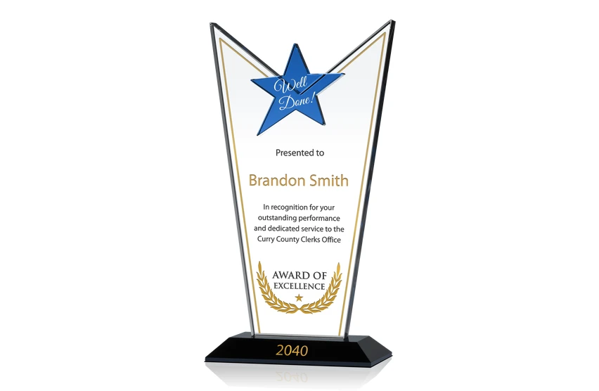 Crystal Star Employee of the Year Award Plaque