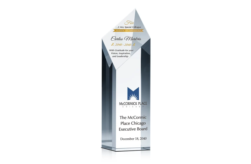 Diamond Tower Crystal Retirement Award Plaque for Colleague, Friend or Employee