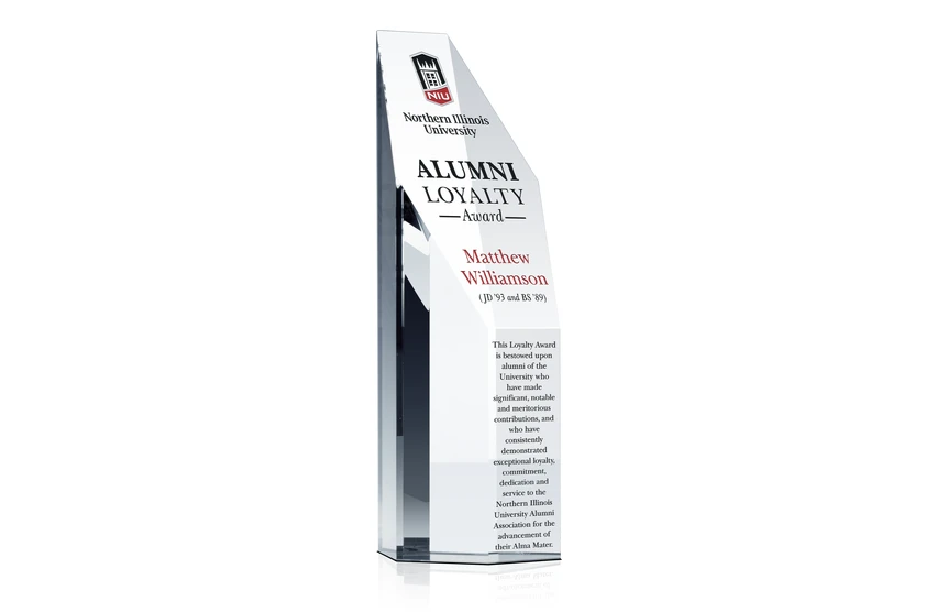 This Loyalty Award is bestowed upon alumni of the University who have made significant, notable and meritorious contributions, and who have consistently demonstrated exceptional loyalty, commitment, dedication and service to the Northern Illinois University Alumni Association for the advancement of their Alma Mater. -