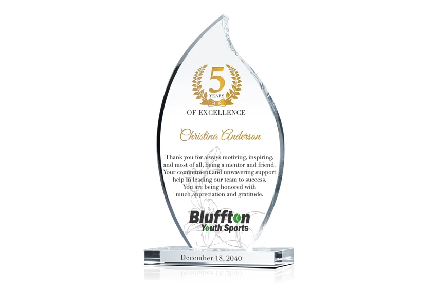 Personalized Flame Shaped Crystal Boss Appreciation Gift Plaque