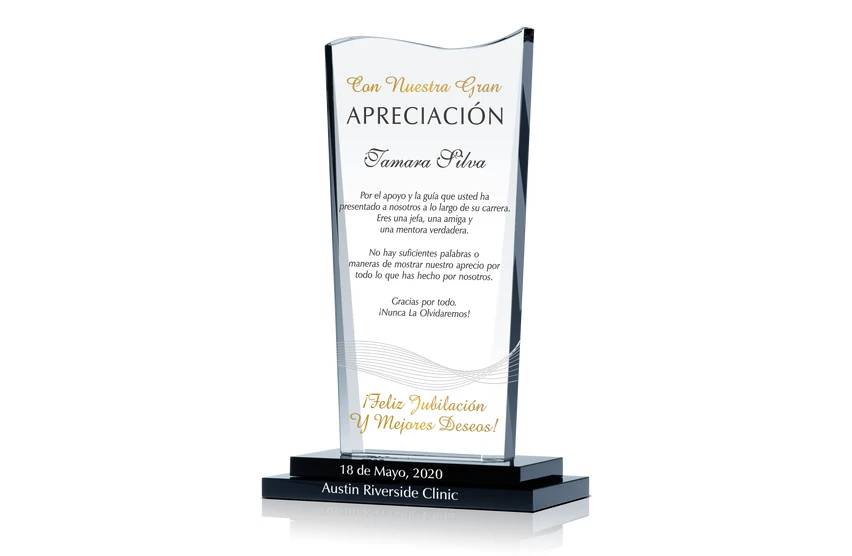 Premio de Cristal Ondulado de Mejor Deseos Para Jubilación de Empleado