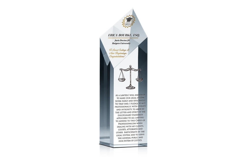 Customized Crystal Juris Doctor JD Graduation Gift for Recent Law School Graduates