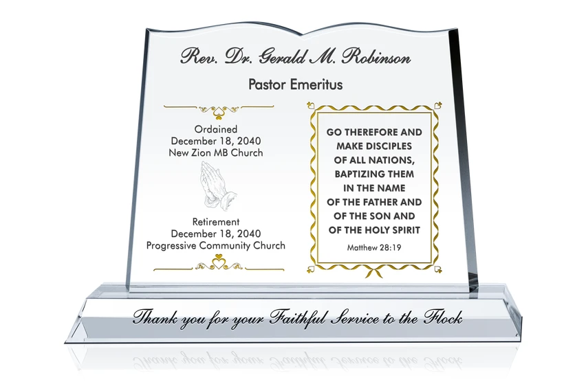 Beautiful custom gift for our Pastor. Custom graphics, easy ordering, delivered BEFORE promised. Great gift. Thank you!