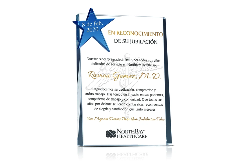 • “Mejores Deseos” Placa de Cristal Para Jubilación de Empleado
