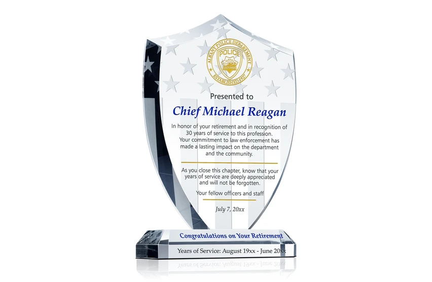 Police Chief Retirement Plaque – Custom Crystal Shield Award