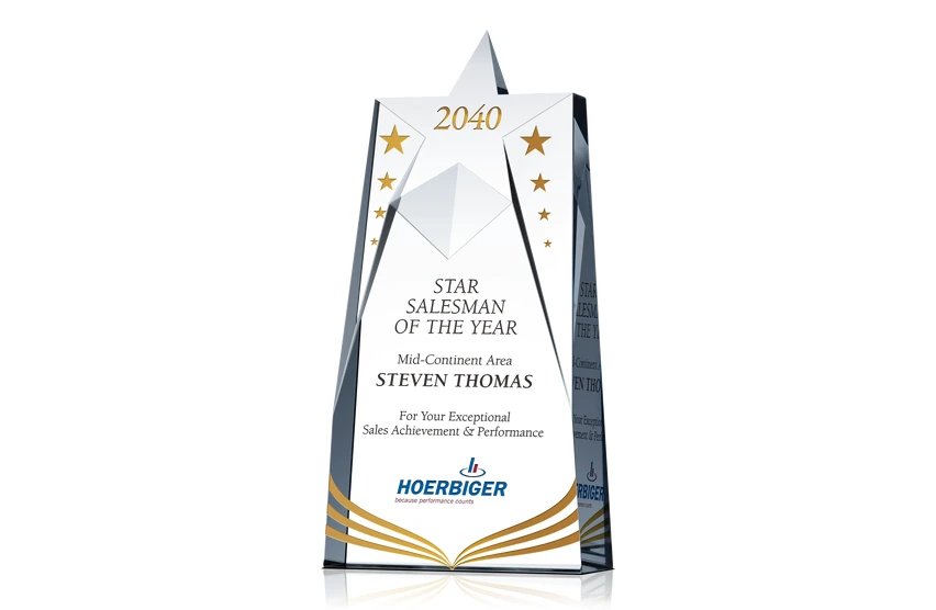 This award was a new one we ordered this year. I was worried if the star would feel delicate as it is thinner than the rest of the award but it was nice and thick and solid. We will continue to order this award every year for our Rising Star winner.
