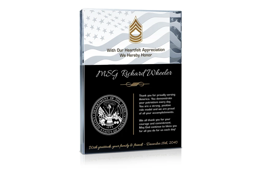 Professional looking and amazing detail crystal plague. I wish I was the recipient. Designing the plague was simple and painless, easy to insert your comments and any artwork designs.