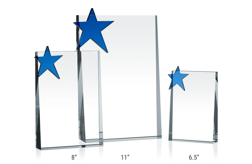 The star affixed in the upper left corner gives this gift texture and style without overwhelming the clarity of the hand-cut, high polished piece. By their very nature, vertical plaques offer a lot of room for engraving, so your personal sentiment will not be cut short.