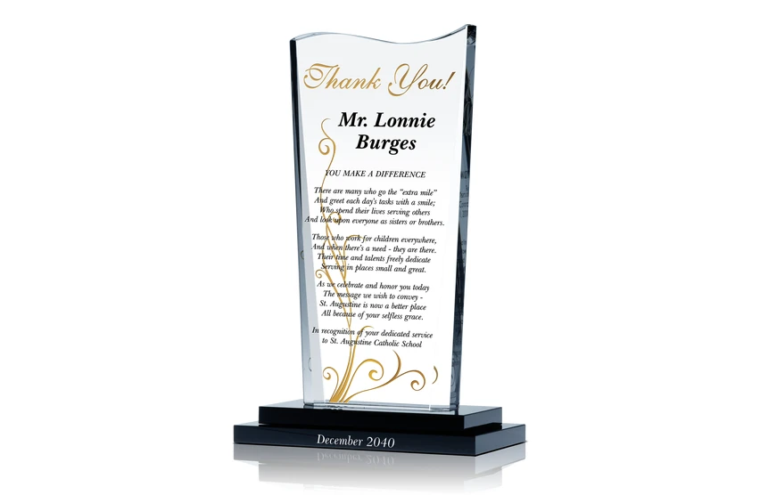 The ordering process was easy and felt safe knowing there was a final design review before printing. The design draft was sent back to me for review almost immediately and I was shocked how quick it was printed and shipped to me. The product was also very high quality. No complaints at all. I will definitely order from Crystal Central in the future.
