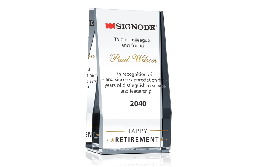 Crystal Wedge Retirement Gift Plaque