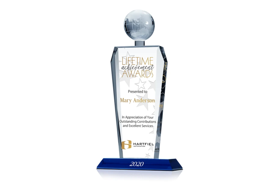 Crystal Imperial Globe Tower for Lifetime Achievement Recognition Awards