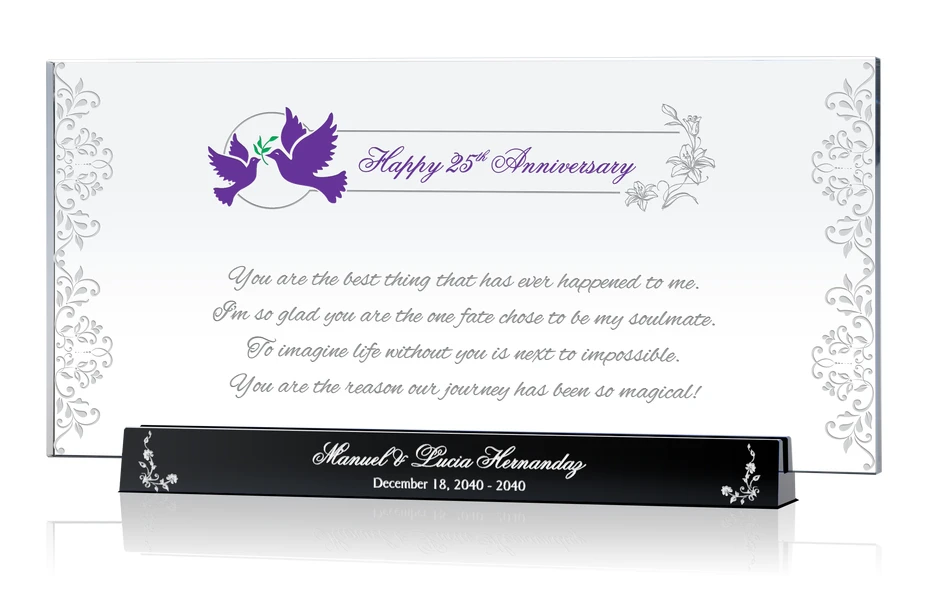 With two doves suspending best wishes for 25 years of marriage, this religious 25th anniversary gift for husband or wife is a perfect gift that honors God's blessings and memories shared throughout 25 years of marriage.