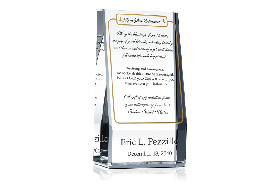 We have been ordering crystal plaques for the last couple of years and you always do an amazing job. Very helpful with the artwork and design.